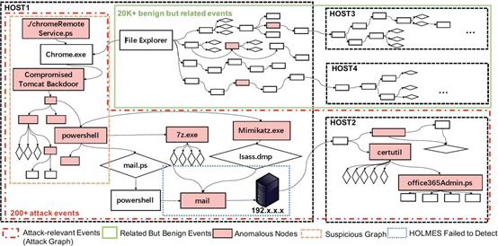 APT29的溯源图示例:NodLink能够以约200个节点的溯源图告警精确定位攻击