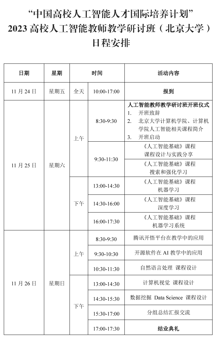 附件:“中国高校人工智能人才国际培养计划”2023高校人工智能教师教学研讨班(威廉希尔体育)日程安排
