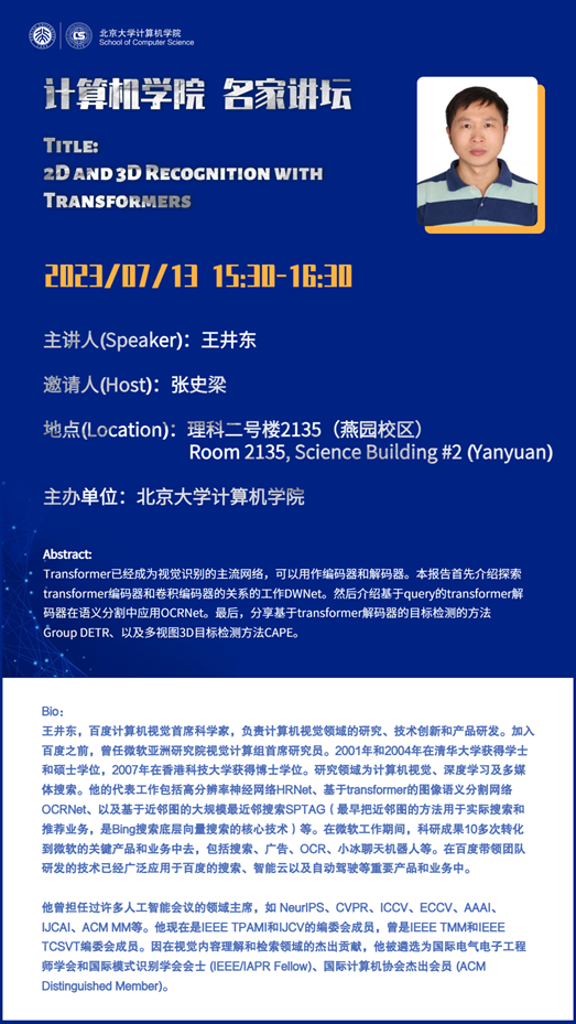 威廉体育williamhill系列讲座名家讲坛第4期——2D and 3D Recognition with Transformers