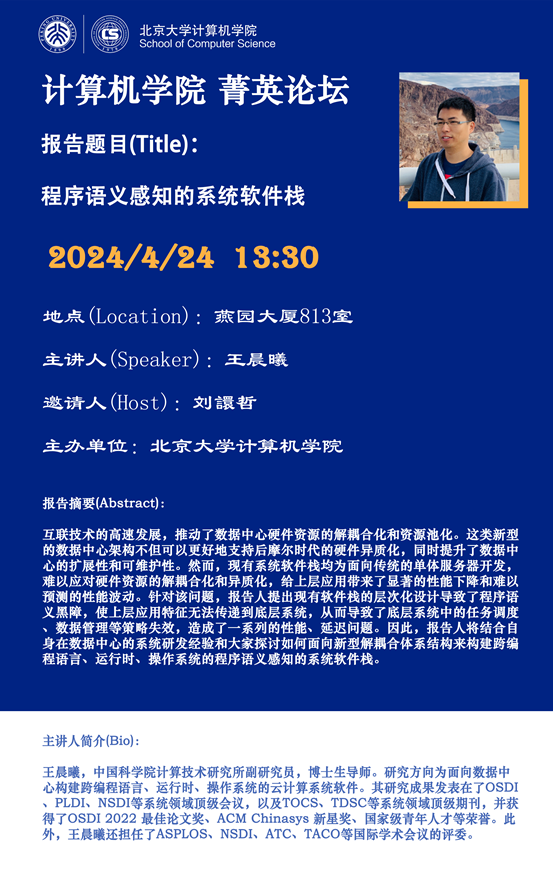 报告题目(Title):程序语义感知的系统软件栈