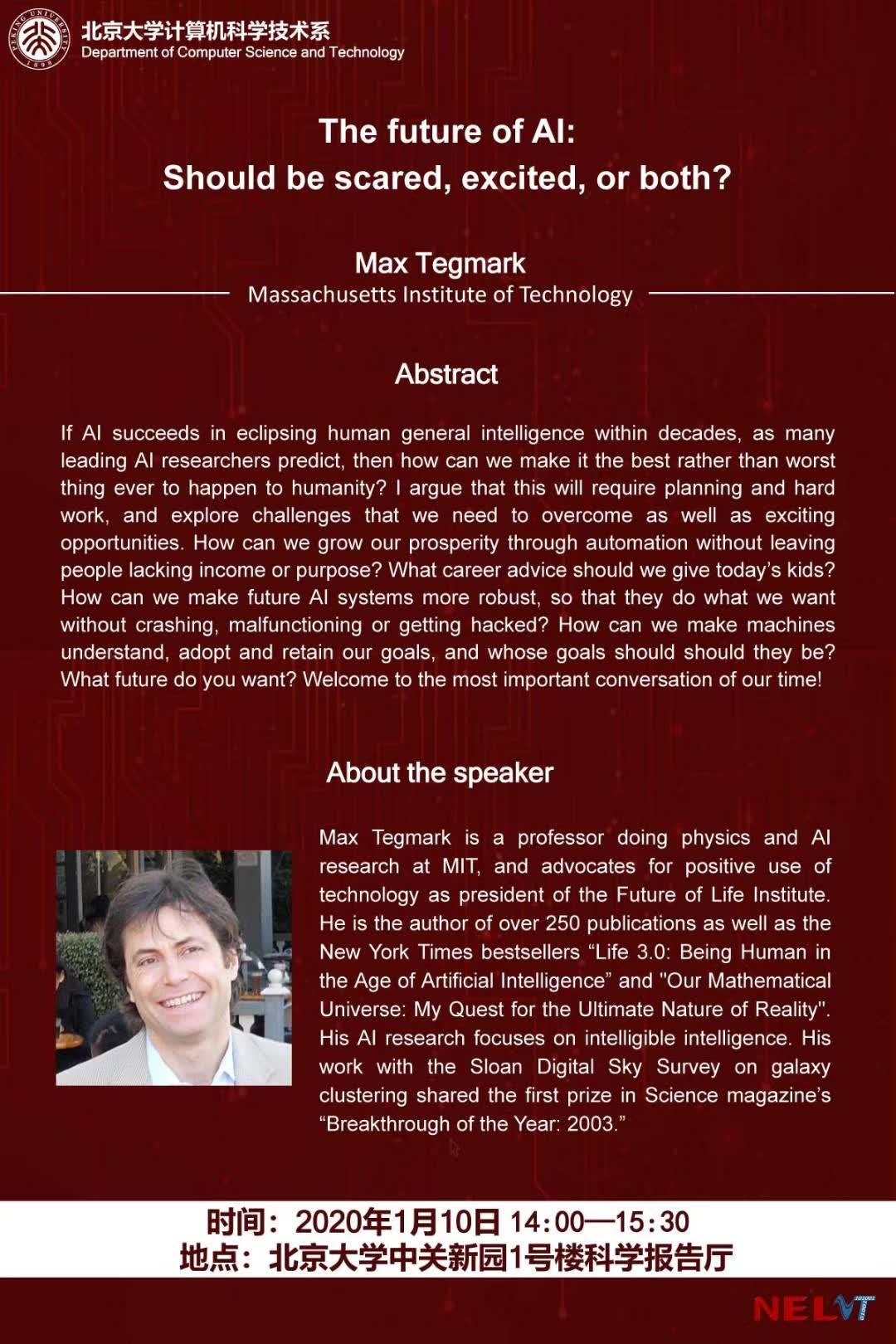 Jan 10 - Talk: The future of AI: Should be scared, excited, or both? (Prof. Max Tegmark)