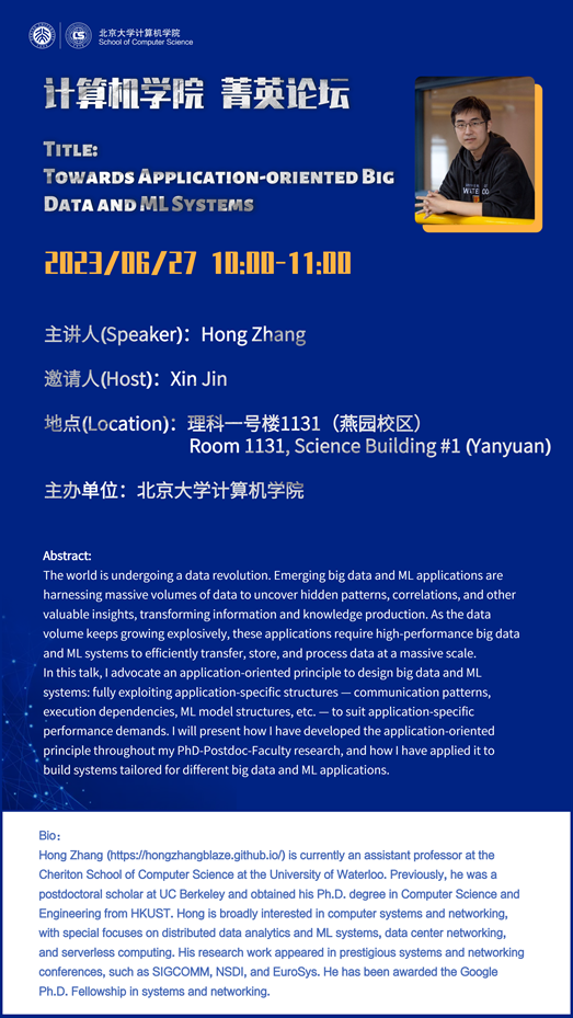 报告题目(Title):Towards Application-oriented Big Data and ML Systems