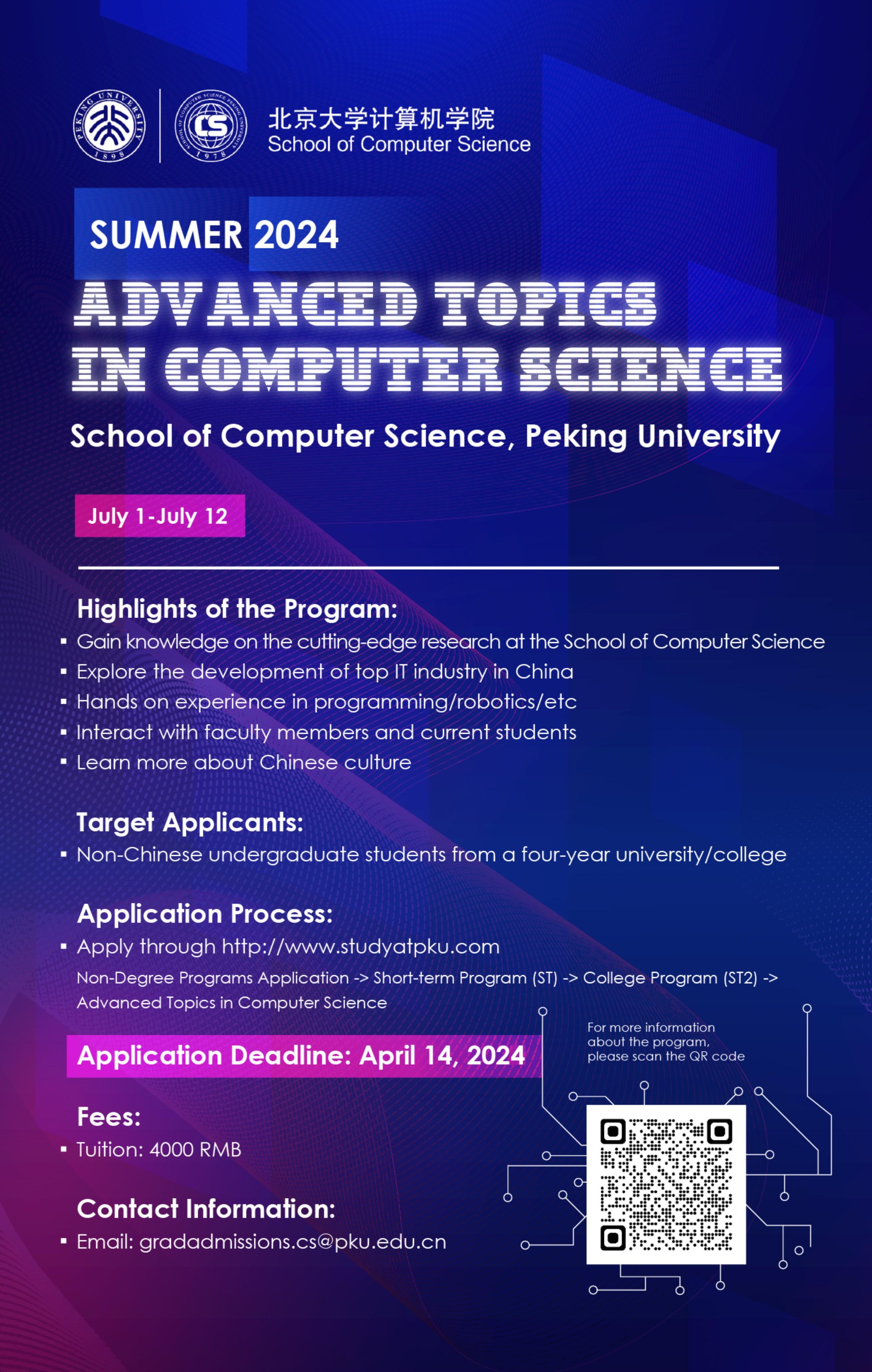 During the two-week summer school, students will immerse themselves in cutting-edge research at the School of Computer Science, delve into the evolution of the IT industry in China, gain practical experience in programming, robotics, and more, engage with faculty members and current students, and deepen their understanding of Chinese culture.