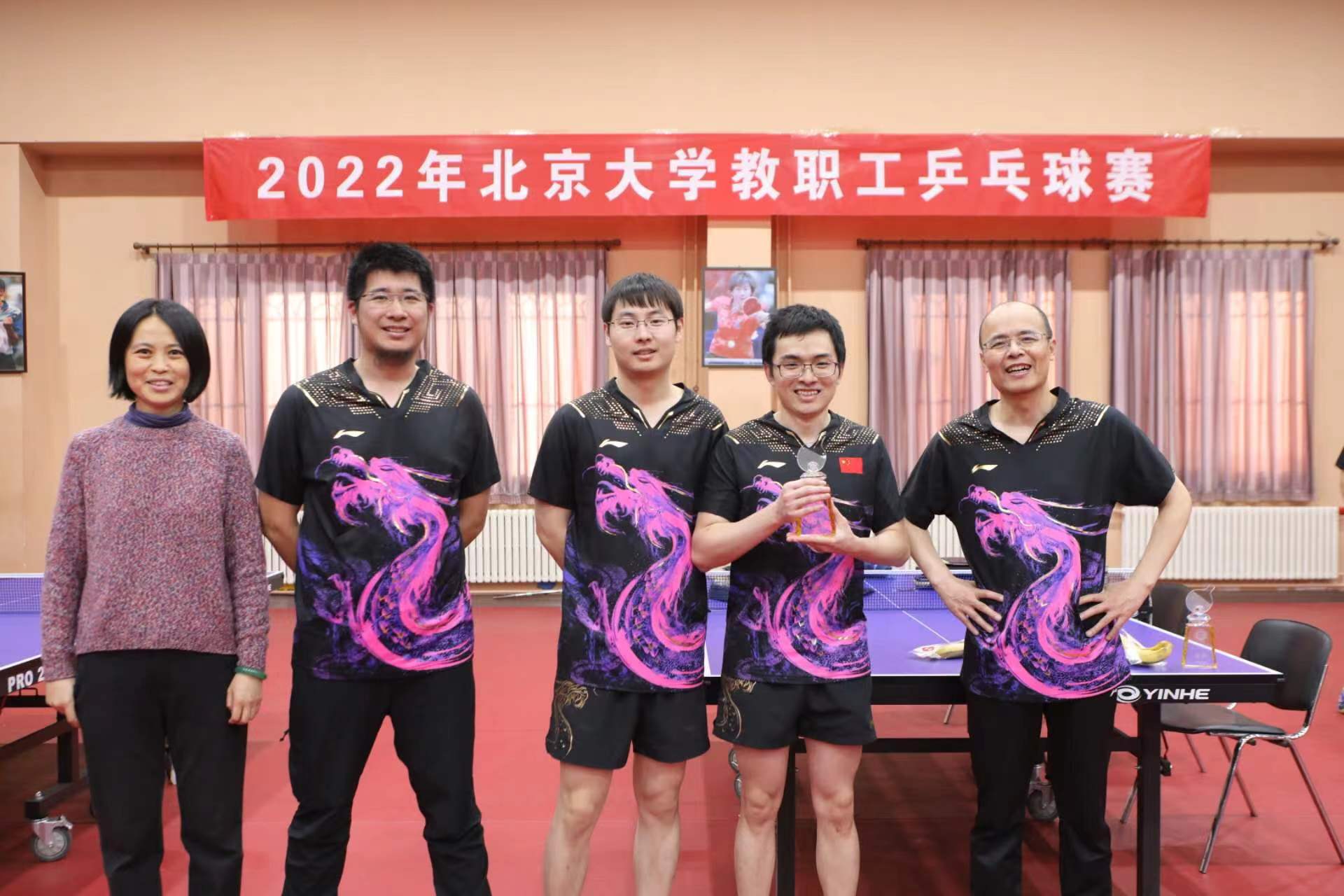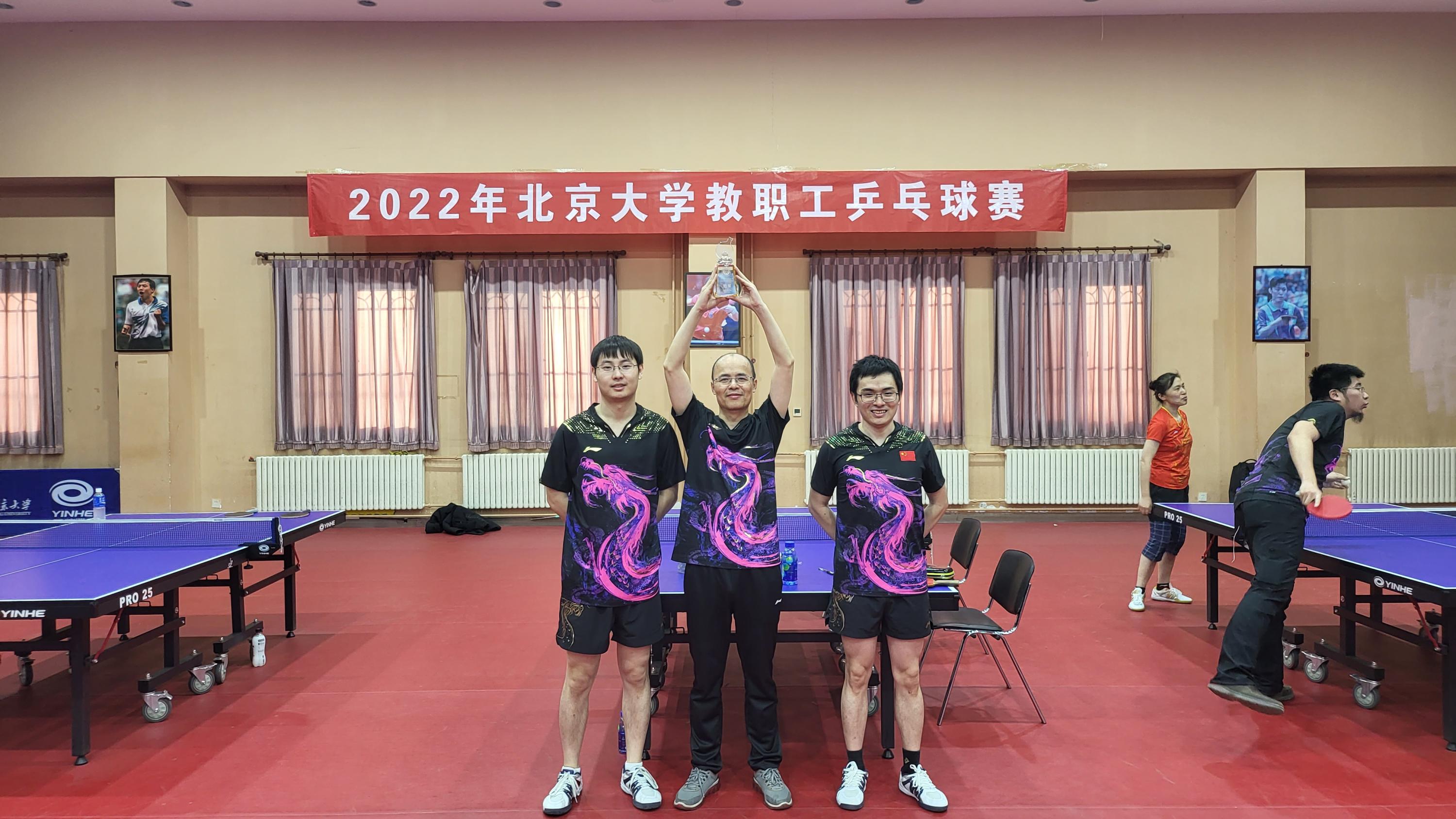 威廉希尔体育教职工乒乓球赛是一年一度面向北大全体教职工的团体赛事,汇集了不同公司和众多相关部门的乒乓球高手,是北大覆盖范围最广、竞争水平最高的乒乓球比赛之一。本次比赛于2022年秋季学期举办,采用团体赛制,对阵双方需要在单打一、单打二、单打三、单打一、单打二五个项目中至少获得三场胜利。作为一支去年刚刚组建的新锐队伍,由李胜、蔡华谦、琚玮三位老师组成的威廉体育williamhill乒乓球男一队出战在邱德拔体育馆举办的北大教职工乒乓球赛,面对数学公司、生科未来联队、机关一队等众多强敌,敢打敢拼、团结协作,最终勇夺北大教职工乒乓球赛团体冠军!