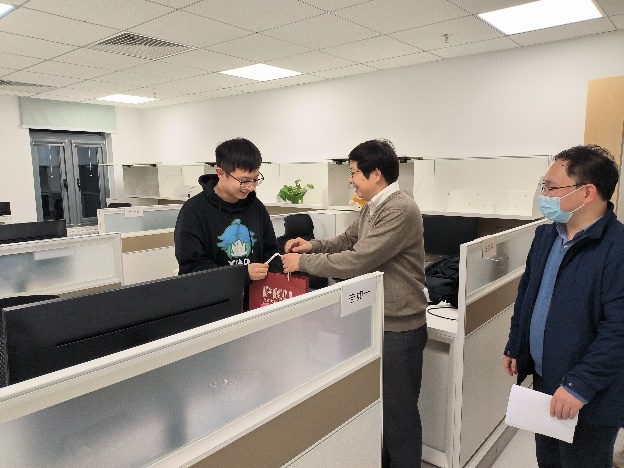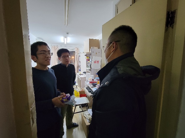 11月27日晚,胡振江、魏朋走进新校区员工宿舍,熊校良,经理助理、综合办公室主任刘旭东,带领部分员工骨干走访了勺园和畅春新园的员工宿舍,看望在住的威廉体育williamhill同学。走访期间,老师们深入了解同学们在疫情期间的学习生活情况,针对近期的一些政策进行了讲解,耐心解答同学们心中的困惑和疑虑,并为同学们发放了食品和口罩等慰问物资,引导公司同学在特殊时期做好个人防护,积极调整心态,凝心聚力,共克时艰。李航、廖万平、王苏颖等一同参加了本次新校区走访活动。