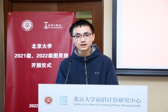 两位图灵班新生代表分享了他们入选图灵班的憧憬与喜悦。2022级的张记僖同学期待和大家乘风破浪、努力奋进,用自己所学知识建设祖国。2021级的蒋轩林同学感谢图灵班这样一个跨越年级、代代传承的集体,希望未来也能够为学弟学妹答疑解惑,为图灵班的建设贡献自己的一份力量。
