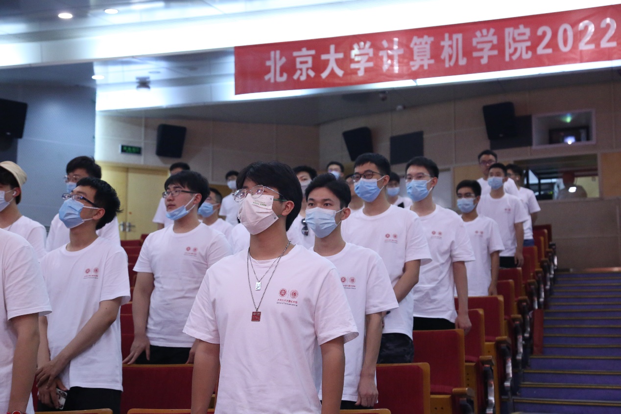 接着,胡老师对2022级新同学们提出了三点希望:一是希望同学们敢于创新、百折不挠,用“计算思维”引领时代发展,努力成长为具备计算思维、引领行业发展的交叉学科人才,用广阔的学科视野面对新的挑战;二是希望同学们脚踏实地、练就过硬本领,以本心守正道,行稳方能致远,勉励同学们踏踏实实做人做事,在坚持不懈的奋斗过程中炼就强大的人生品格,在真刀真枪实干中成就非凡事业;三是希望同学们心怀“国之大者”,把青春之“小我”融入国家、民族、人民、人类的“大我”之中。多年来,北大计算机人以国家需求为导向,走出了一条自力更生建设和发展计算机学科之路。他鼓励同学们在实现中国梦的伟大实践中释放青春激情、追逐青春理想,努力成为堪当民族复兴重任的时代新人,让青春在奉献中闪耀光芒。