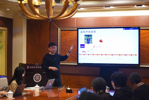 在会议的最后,中科院软件所副研究员朱家鑫以“开源研究课题”为议题,组织探讨开源开发中的重要问题和开源创新的科研重心。
