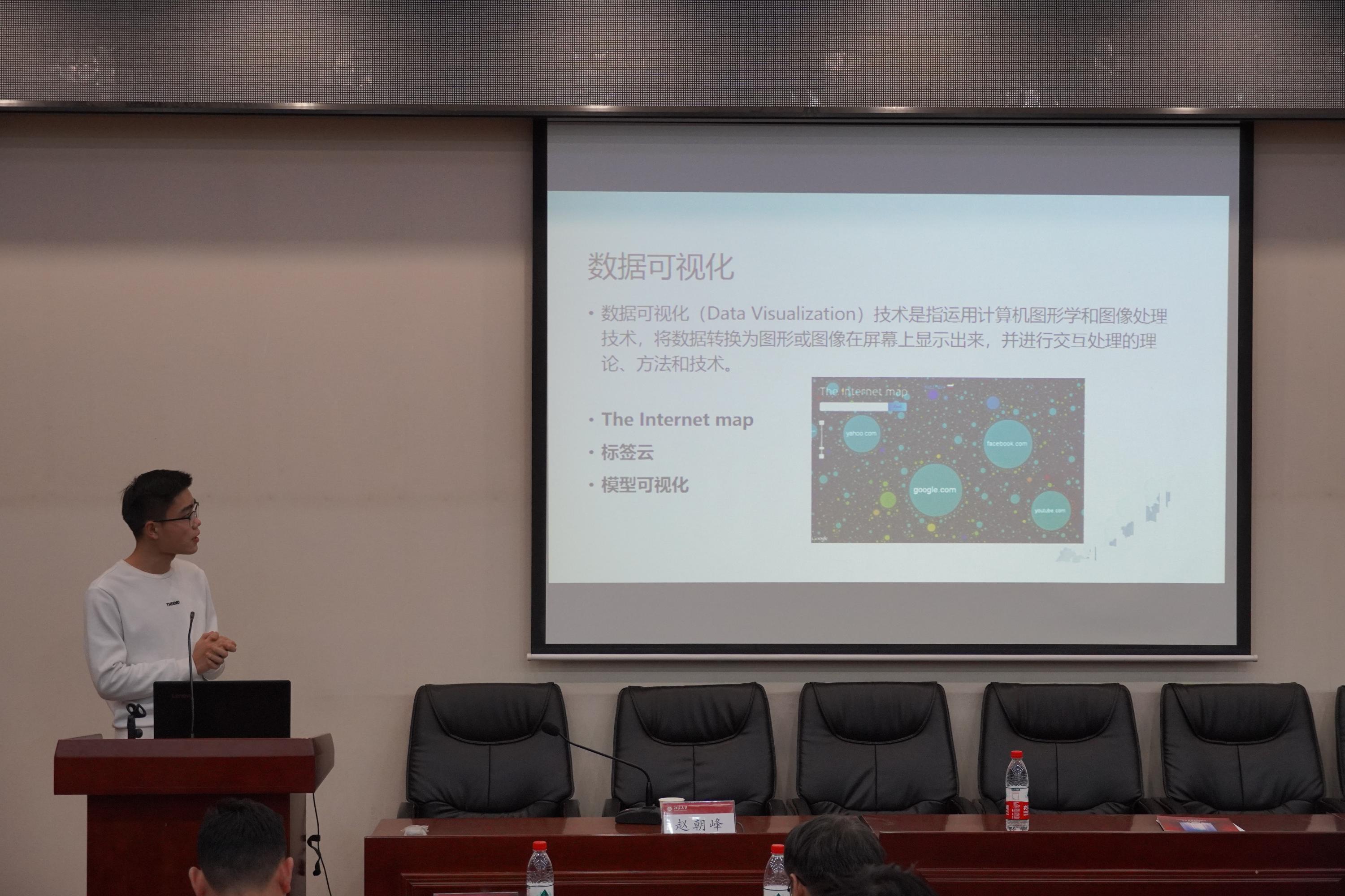 杨森感谢了胡振江主任对计算机系员工工作的大力支持,并代表计算机系团总支介绍“先锋训练营”培养方案。本次训练营分为理论学习、素质提升、调研实践三个板块,旨在提高青年骨干的思想政治水平和个人工作能力,以期全面提升信息科学技术公司计算机科学技术系基层党团班组织的凝聚力、组织力和服务力。杨森指出,计算机科学技术是信息时代科学技术的掌上明珠,员工骨干们也肩负着积极宣传调研、讲好学科故事的重任。由各党团班组织宣传骨干为成员的计算机系宣讲团在本次会议上正式成立,计算机系员工宣讲团刘欢同学代表宣讲团作题为“大数据时代:从云计算到可视化分析”的主题演讲。