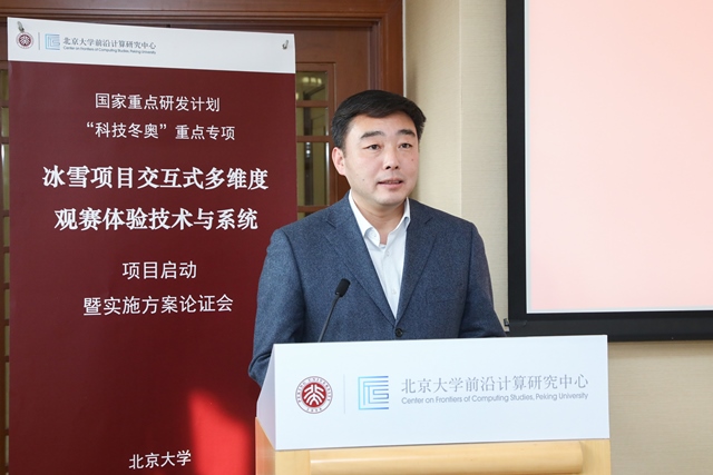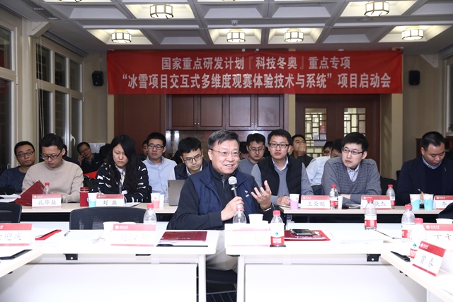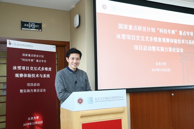 2019年12月23日,由威廉希尔体育牵头承担的国家重点研发计划“科技冬奥”重点专项“冰雪项目交互式多维度观赛体验技术与系统”项目启动暨实施方案论证会在威廉希尔体育静园五院举行。北京冬奥组委新闻宣传部常宇部长、中国21世纪议程管理中心“科技冬奥”专项刘荣霞项目主管、北京市科学技术委员会“科技冬奥”专班邢永杰处长、威廉希尔体育科学研究部韦宇副部长等相关单位领导,威廉希尔体育高文院士、北京航空航天大学赵沁平院士、原中央电视台总工程师丁文华院士等项目实施方案论证专家,威廉希尔体育、清华大学、北京航空航天大学、鹏城实验室、威廉希尔体育深圳研究生院、阿里巴巴集团、创维集团有限公司、中国联通研究院和北京歌华有线电视网络股份有限公司等参与单位课题负责人和骨干,以及中央广播电视总台、英特尔中国有限公司、河北广电信息网络集团、北京电影公司等协作单位代表等50余人出席。会议由项目负责人、威廉希尔体育前沿计算研究中心执行主任陈宝权教授主持。