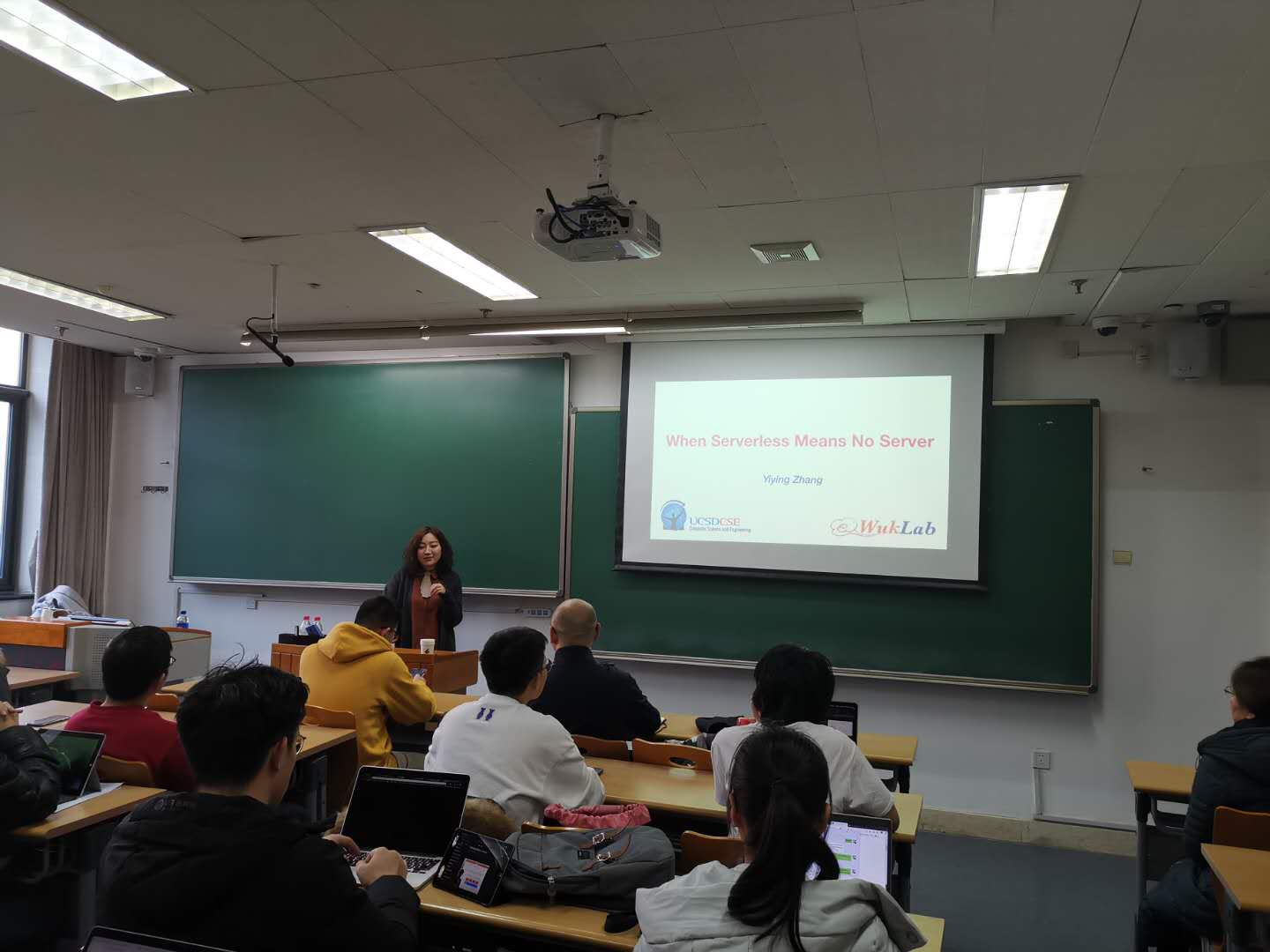 2019年12月18日,美国加州大学圣地亚哥分校张怡颖教授应高可信软件技术教育部重点实验室邀请在威廉希尔体育发表题为“When Serverless Means No Server”的学术报告。她领导的Wukong Lab从事与数据中心相关的研究,研究方向涉及分布式操作系统、跨层系统,系统架构和数据库等,该团队于2018年荣获操作系统领域顶级会议OSDI的最佳论文奖。重点实验室刘譞哲副教授主持讲座。