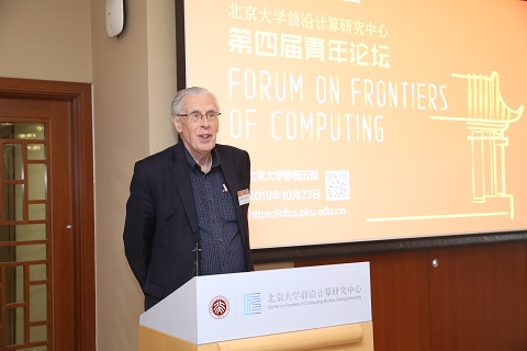 在论坛开幕式上,作为前沿计算研究中心主任及“图灵班”发起人之一,图灵奖得主、中国科公司外籍院士 John Hopcroft 教授代表中心欢迎大家的到来。他比较了中美两国在员工培养上的差异,介绍了在北大成立前沿计算研究中心的背景和初衷,高度肯定了北老员工的优异表现,欢迎更多优秀的教职人员加入中心,并对中心的未来发展寄予厚望。
