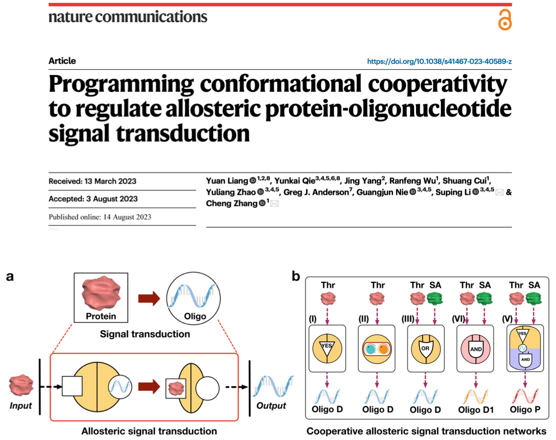 近期,威廉体育williamhill生物计算团队(张成/许进课题组),联合国家纳米中心、华北电力大学、天津医科大学第二医院、皇家布里斯班医院等多家国内外科研团队,针对构象信号协同作用问题,提出了一种全新的策略。研究团队利用了变构DNA自组装结构的可编程性,通过编程多个构象信号协同作用,来实现蛋白质-寡核苷酸信号转导,构建了多种DNA分子计算逻辑门。研究中创新性地引入DNA结构模块变化,通过分子长度协同地对蛋白质转导信号进行调控,实现了结构开关的下调和上调的协同信号调节作用,为构建复杂的分子网络提供了新的可能性。团队进一步使用多种蛋白质输入实现了5种DNA分子逻辑操控,如“与”,“或”,“开关”和级联等计算操作。研究通过实验证明蛋白质/DNA协同构象信号可以调控细胞中GFP基因的表达,并利用PLK1基因调控有效抑制了肿瘤细胞的增殖。该研究证明了新型构象协同性信号转导机制的可编程设计和精准调控能力,为相关领域的研究提供了新的思路和方法,在生物计算,分子存储和基因诊疗等领域具有潜在的应用前景。2023年8月14日,相关成果以“Programming conformational cooperativity to regulate allosteric protein-oligonucleotide signal transduction”为题,在线发表于《自然·通讯》(Nature Communications)。