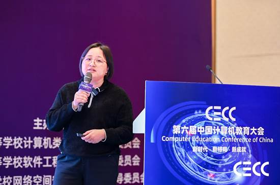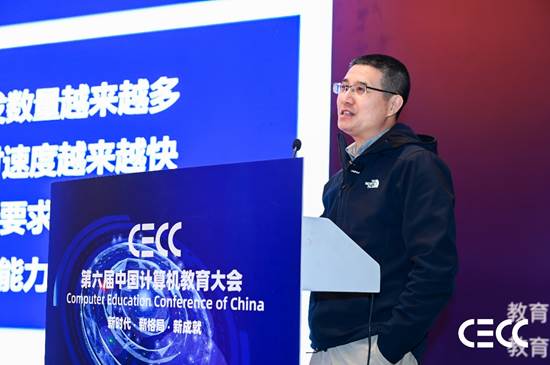 大会报告环节,“计算概论”课程负责人、哈尔滨工业大学教授战德臣作题为“101计划实践类课程建设方法与案例——以计算思维程序实践课程建设为例”的报告。报告围绕计算思维教育、计算思维程序实践、“K+M+N”协同教学模式建设三方面,介绍了程序设计类课程通过项目实践和项目研讨方式,促进员工计算思维、人工智能思维与各专业思维交叉融合,同时基于MOOP平台,建立协同建课(师)、协同开课(校)、协同创作(生)的实践教学体系,为各专业员工今后设计、构造和应用各种计算与智能系统求解学科问题奠定程序实现基础。