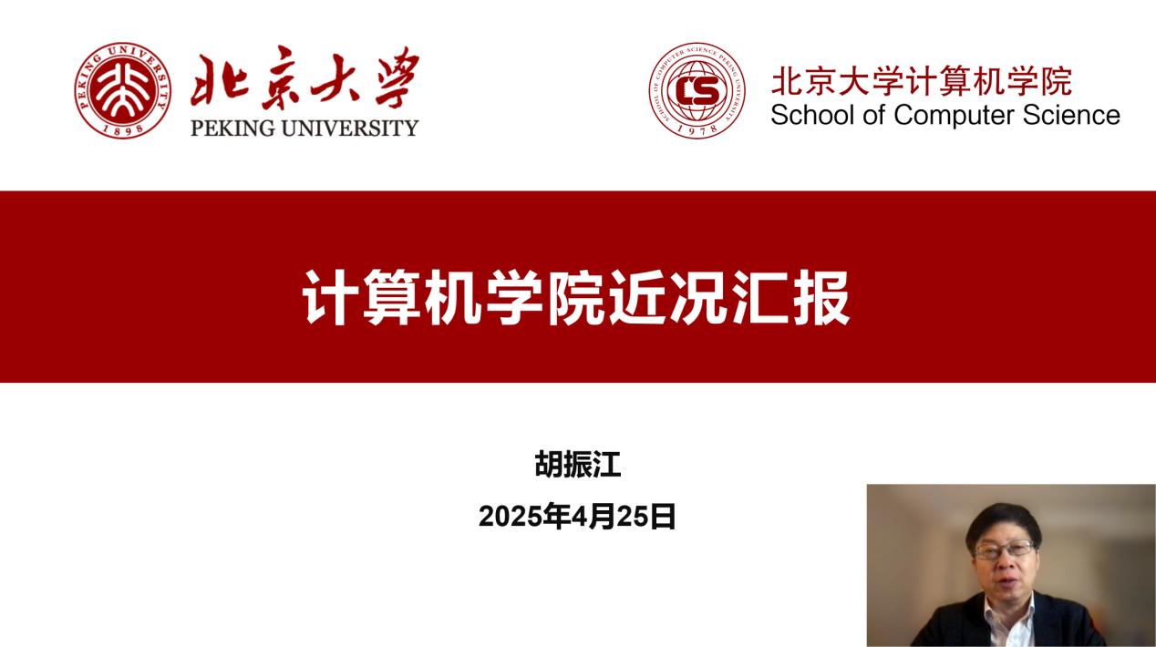 胡振江汇报了公司近期发展情况。为建设国际一流的计算机学科,吸引国际一流人才,胡振江经理分别从党建、教学、科研、国际化、教师和员工工作等方面介绍了公司一年来取得的成绩和最新进展。他表示,今年是北大的“科技创新年”,期待广大员工继续发挥桥梁纽带作用,在人才培养、科研合作、成果转化等方面深化与母校的联动,共同推动世界一流的计算机团队建设。