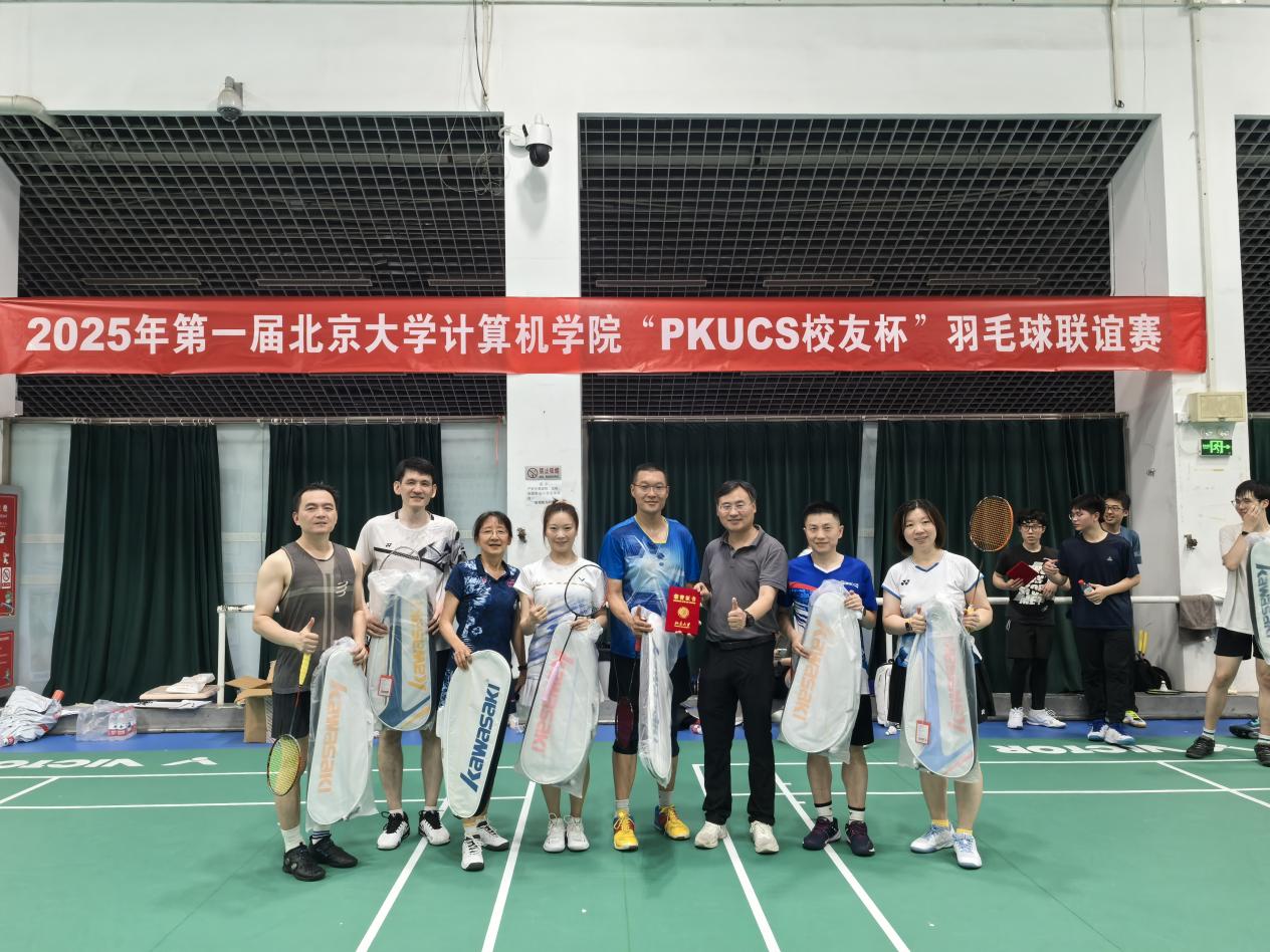 王选所队:得知要举办院友赛的消息,大家积极联络,冯岩松老师作为领队在李素建老师和李婷的指导下很快就组成了王选所(之友)队!虽然平时大家在一起打球的机会不多,但有李婷老师这样的资深高手指导坐镇,很快就确定了出战阵容。虽然我们都是临时组合搭档上场,但在比赛中大家却能相互配合、互相鼓励,即便遇到了强大对手、偶有失利,仍能互相补位,发挥集体优势,取得了不错的成绩,真正体现了院友之间那种不可言说的默契。在比赛过程中,李婷老师深谋远虑布置战术掌握主动;付娜老师网前幻影抢网得分;鞠莉老师频频上演绝命封网;白森院友多次表演精彩的长距离奔袭鱼跃救球,赢得了满场喝彩;杨晨院友凌波微步,线路刁钻,杨成院友全场无死角,出其不意,令对手疲于奔命,最终锚定冠军。