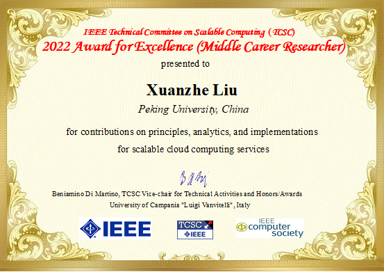 2022年12月18日,威廉体育williamhill刘譞哲老师因在“大规模可扩展云服务计算系统的原理、解析和实现”的杰出贡献,获颁2022年度IEEE Technical Committee on Scalable Computing(TCSC)的职业中期卓越研究成就奖( Award for Excellence(Middle Career Researcher))。