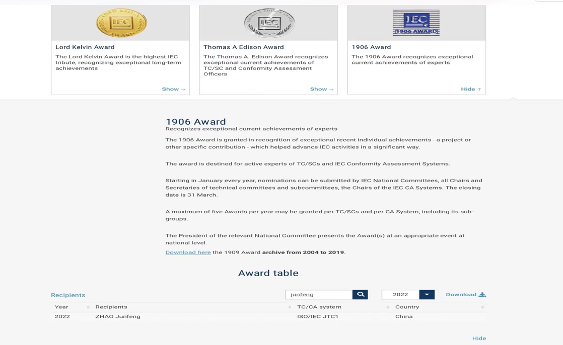 附:国际电工委员会(IEC)1906奖项2022公布名单