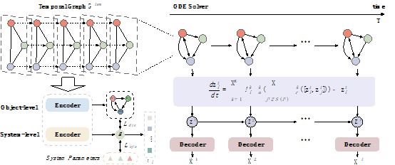 多智能体动态系统中的智能体可能会互相影响,从而影响彼此的行为。最近的研究主要使用几何图来描述这些作用关系,然后通过强大的图神经网络(GNNs)来捕捉这些相互作用。然而,在分布偏移和复杂底层规则的挑战性场景中预测相互作用的动态变化仍未解决。针对这些挑战,ICML2024论文《PGODE: Towards High-quality System Dynamics Modeling》提出了一种名为原型图常微分方程(Prototypical Graph ODE, PGODE)的新方法来解决这个问题。PGODE的核心思想是从上下文知识中学习原型分解并将其纳入到连续图常微分方程框架中。具体来说,PGODE利用表示解耦和系统参数从历史轨迹中提取对象级和系统级上下文,显式地模拟它们的独立影响,从而增强模型在系统变化下的泛化能力。然后,论文将这些解耦的潜在表示整合到图常微分方程模型中。该模型确定了各种相互作用原型的组合以增强模型表达能力,并使用端到端的变分推理框架进行优化。广泛的实验在分布内和分布外设置中验证了PGODE与各种基准相比的优越性。