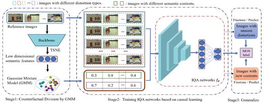 图像质量评价(IQA)算法旨在准确量化人类对图像的主观感知质量。由于标注成本过高,现有的IQA数据集规模较小。因此,对于目前主流的基于深度学习的IQA方法而言,模型的泛化性受到了一定程度的限制。论文提出了一种新的端到端的IQA方法(称为Causal-IQA)来解决这个问题。具体而言,论文首先分析了IQA任务中的因果机制,并构建了一个因果图,以了解失真类型、图像内容和人类主观评分之间的相互作用和混淆效应。然后,通过将学习目标从相关关系转移到因果关系,Causal-IQA基于因果关系的优化策略减轻混淆效应,从而提高图像质量分数的估计精度。该优化过程在基于后门准则的反事实划分过程构造的样本子集上实现。论文提出的Causal-IQA模型是对传统IQA训练方式的一个突破,具有三个优点: (1) 有效消除了图像失真和图像内容的混杂效应,提高了泛化能力;(2) 具备可解释性,为IQA过程提供了新颖的视角;(3) 可无缝集成到任何BIQA网络进行训练。大量的实验证明了因果关系的有效性和优越性。