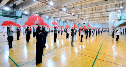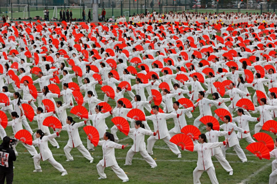 4月20日上午8时40分,伴随着《霍元甲》音乐,老师们整齐划一,迈着铿锵有力的步伐,走上五四操场,为全校师生带来一场震撼人心的燕园功夫扇表演。