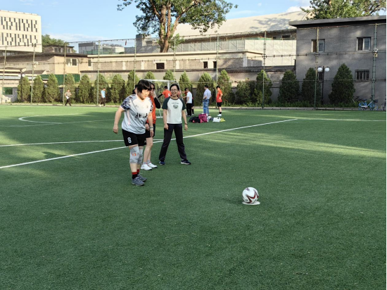 在比赛当天,老师们早早来到球场进行赛前备战热身,并且邀请了专业的教练老师来进行点球射门动作指导,每位老师都非常认真的学习,期盼自己在赛场上能够为集体贡献一份力量!