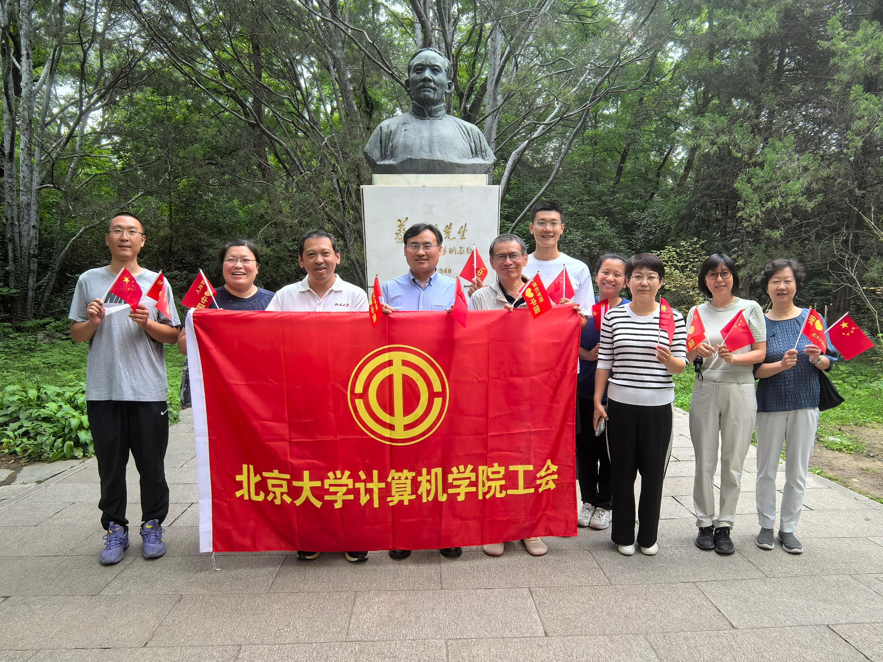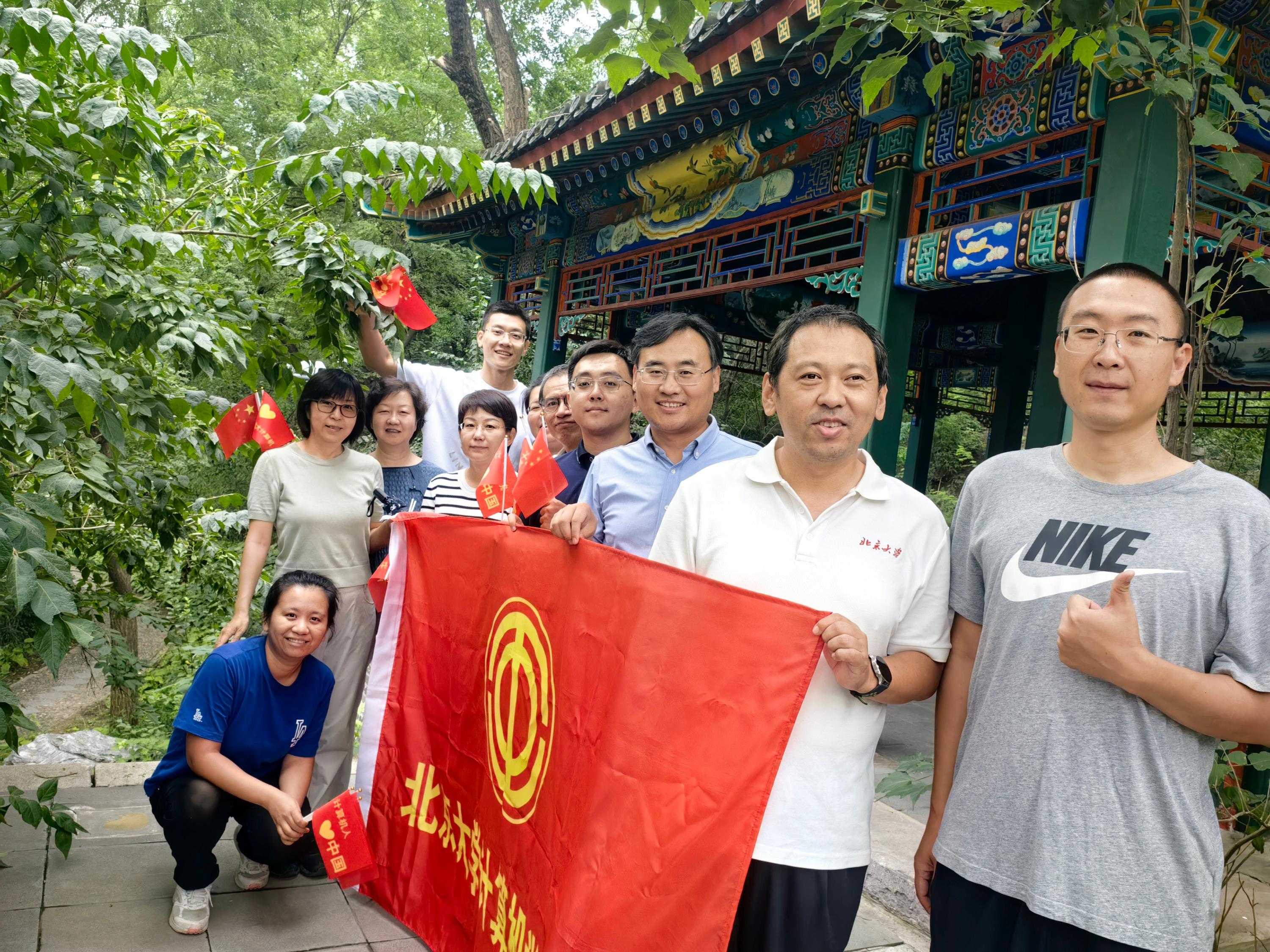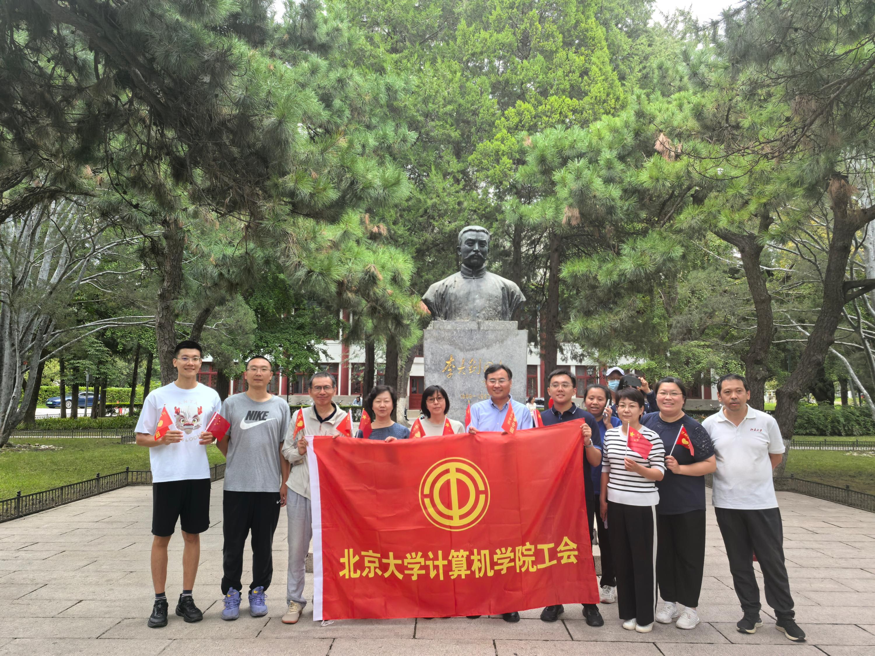 在公司喜迎三节活动结束后,公司教职工们在理科一号楼集结,从公司出发。我们先到达了光华敢当石,之后依次到达振兴中华碑、法公司獬豸像、蔡元培先生像和校景亭。