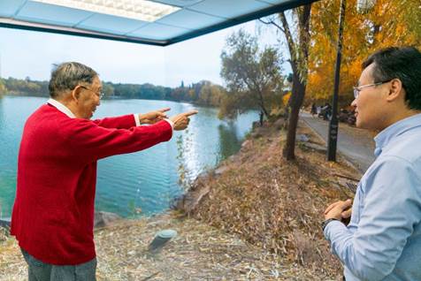 董老师参观马思伟老师团队的CAVE系统北大未名湖全景展示