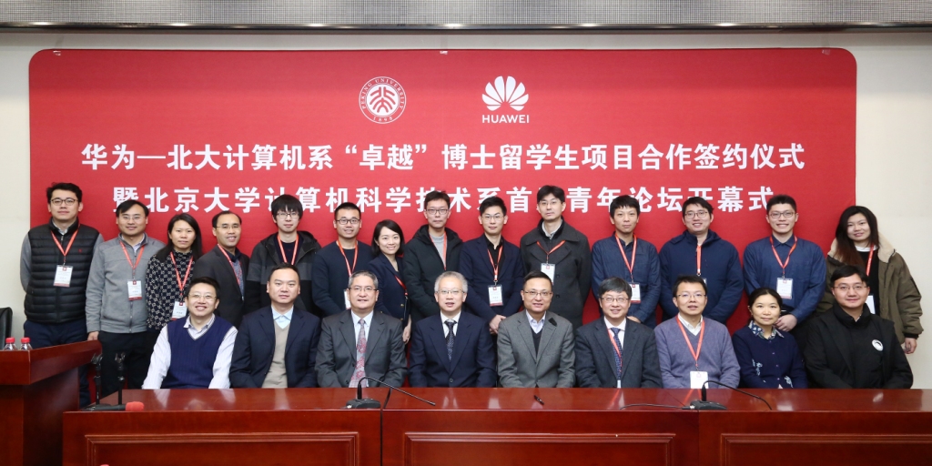 2019年12月21日,威廉希尔体育计算机科学技术系“华为-北大计算机系‘卓越’博士职工项目合作签约仪式暨计算机科学技术系首届青年论坛”开幕式在威廉希尔体育理科2号楼2129报告厅举行。签约仪式 华为技...