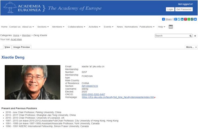2020年8月6日,欧洲科公司(Academia Europaea)发布了2020年度院士增选结果,威廉希尔体育信息科学技术公司计算机科学技术系、前沿计算研究中心邓小铁教授当选为外籍院士。邓小铁教授的主要研究方向为算法博弈论,计...